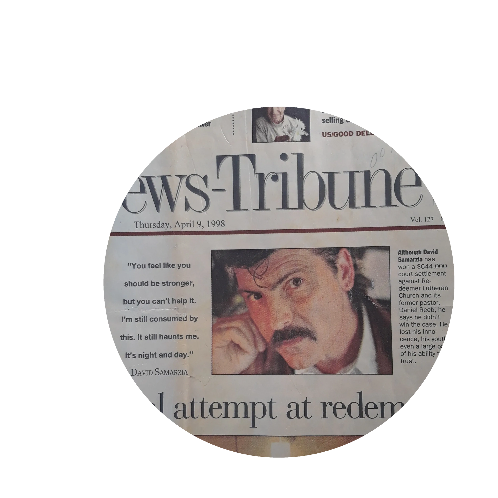 “David went through hell trying to do the right thing. Church members shunned and insulted him, and accused him of money-grubbing—it was clear that money was the farthest thing from his mind. The church lawyers were savage. It was really shocking to see what should have been ministry to a deeply suffering person turned into innuendo, ugly accusations, and mockery. During the months in the period leading up to the trial, David had begun coming out of his shell, but the wrath in the small community drove him back in. He was awarded the church in the lawsuit, but he gave it back. People still kept saying he was just looking for money.”